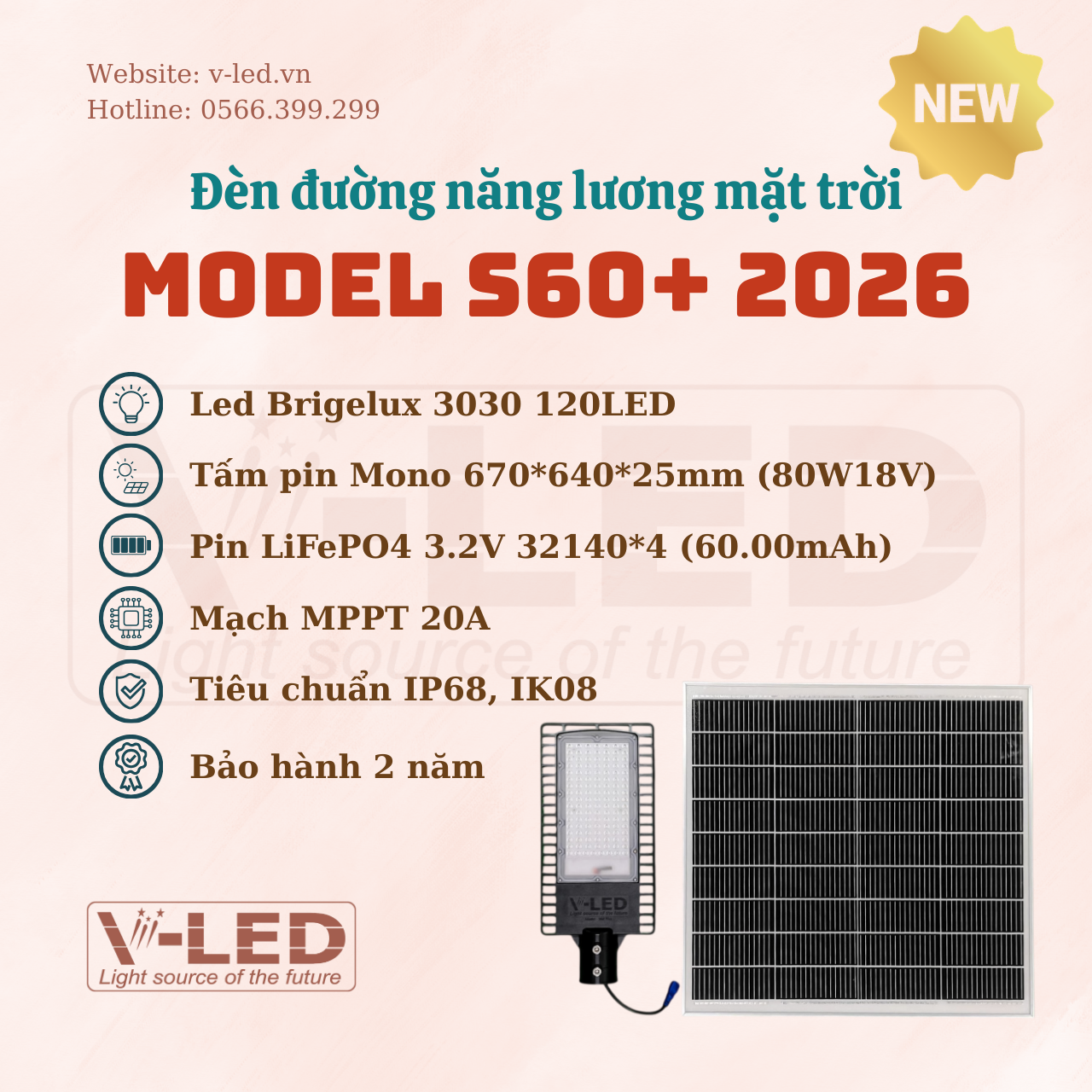 Vì sao nên chọn đèn đường NLMT V-LED S60+ mẫu mới